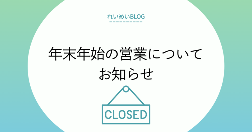 お知らせ 年末年始の営業についてお知らせ(2025年) 2025年12月8日 by BackOffice 税理士法人れいめいは年末年始の営業につきまして、下記のとおり休業日とさせていただきます。 お客様にはご不便、ご迷惑をおかけいたしますが、ご了承いただきますようお願い申し上げます。 休業期間:12月27日(土)~1月4日(… Continue reading →